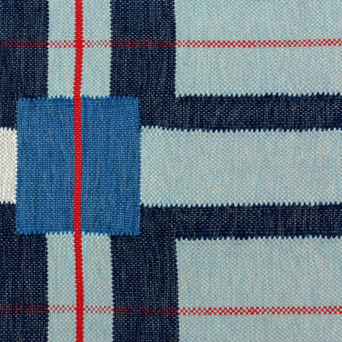 CATENA CUCINA Blue, Single Weave, white mix 1023, 1002; light blue mix 5012, 5032, 1002; blue mix 5003, 5021, 5013; dark blue mix 5027, 504, CH014; red stripes 3006, on the natural yarn