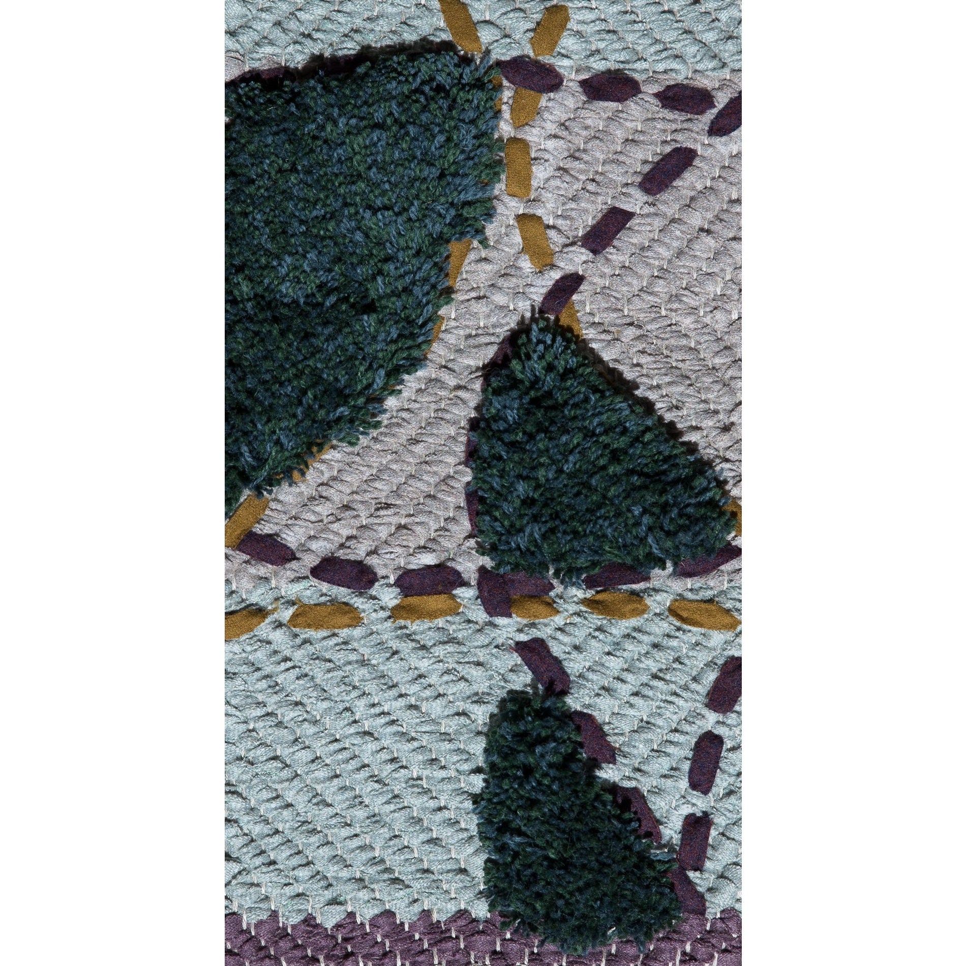LORO AQUA GREEN, Base light blue 0472, beige 0431, kant purple 0496, Boucle green mix CH017, CH3424, Stitching wine 0495, mustard H471 on the natural yarn