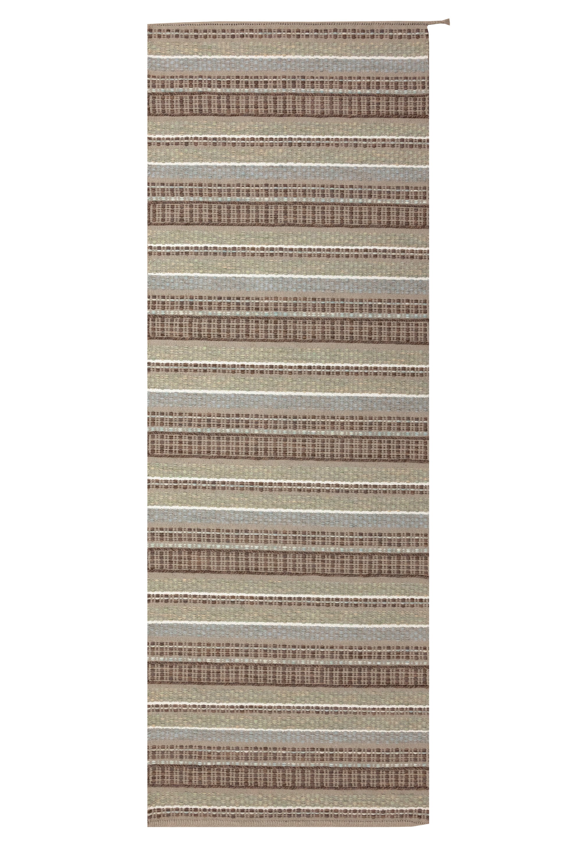 The striped design can act as a refined accent in smaller formats or expand to fill an entire room with a strong, calm presence. “The traditional stripes, subtle tonal shifts, and detailed character are inspired by antique silk ribbons and my own weaving samples.” - Maja Johansson Starander. The name Linnea references Carl von Linné, linen yarn, and the idea of the line—reflecting both material and form.